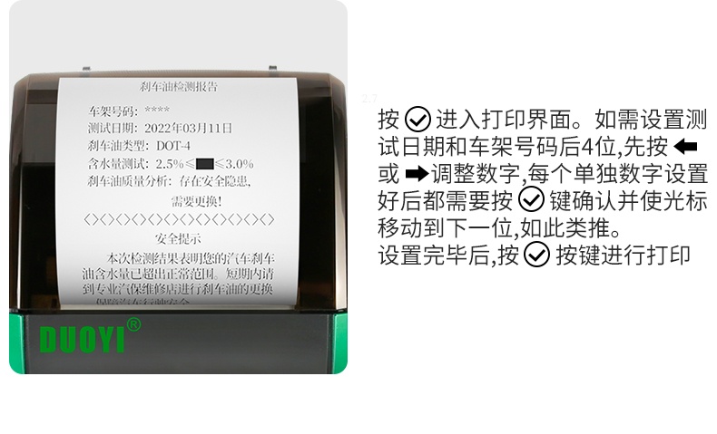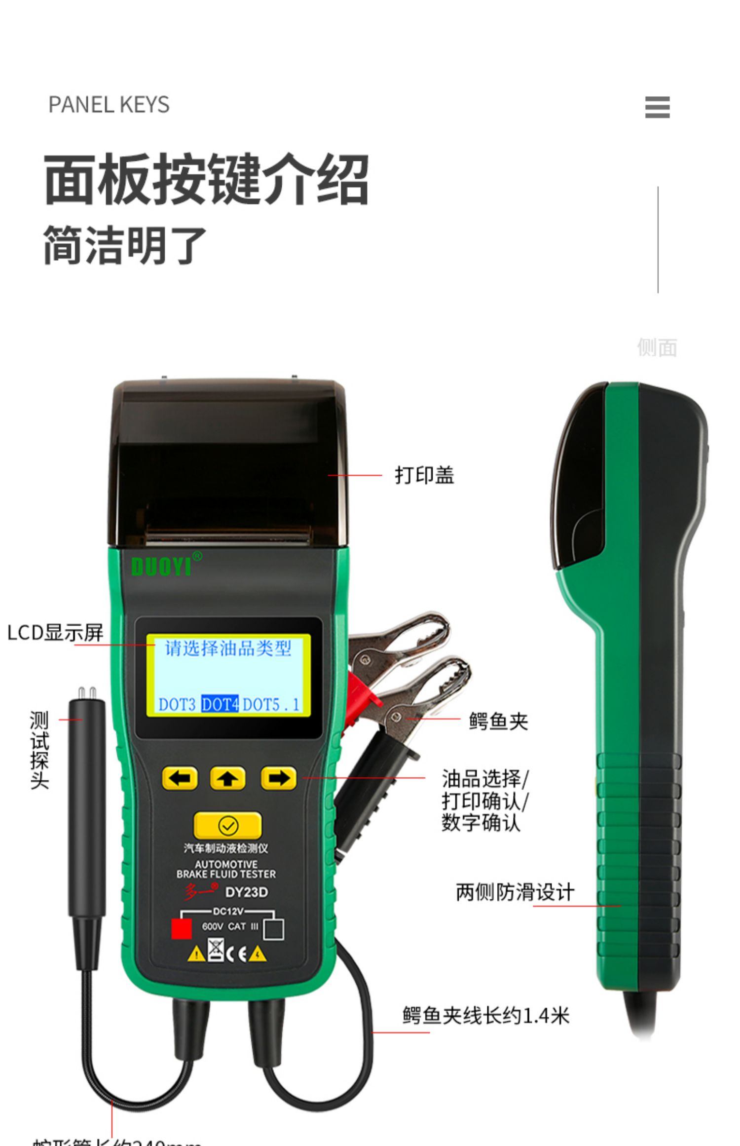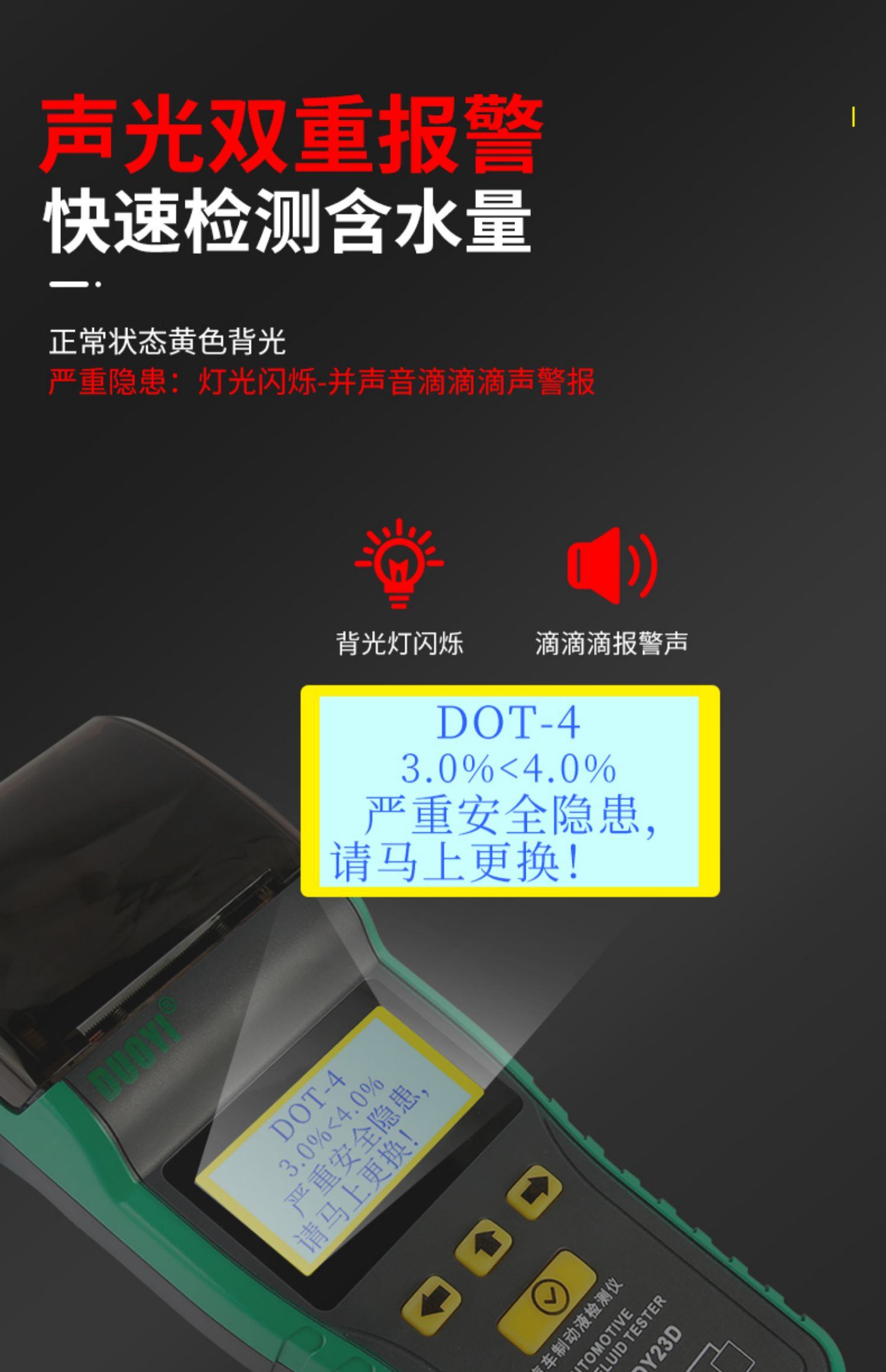 多一DY23D剎車油檢測儀多功能打印報警含水量檢測制動液測試儀