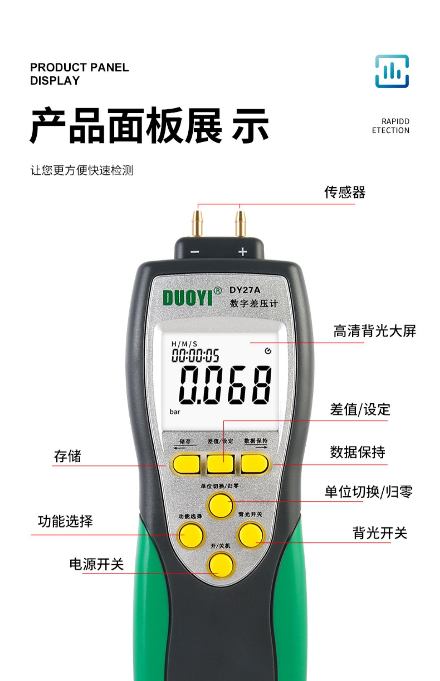 多一DY27A壓力表差數(shù)顯微壓差計(jì)手持式微壓計(jì)氣壓表檢測(cè)儀壓差計(jì)