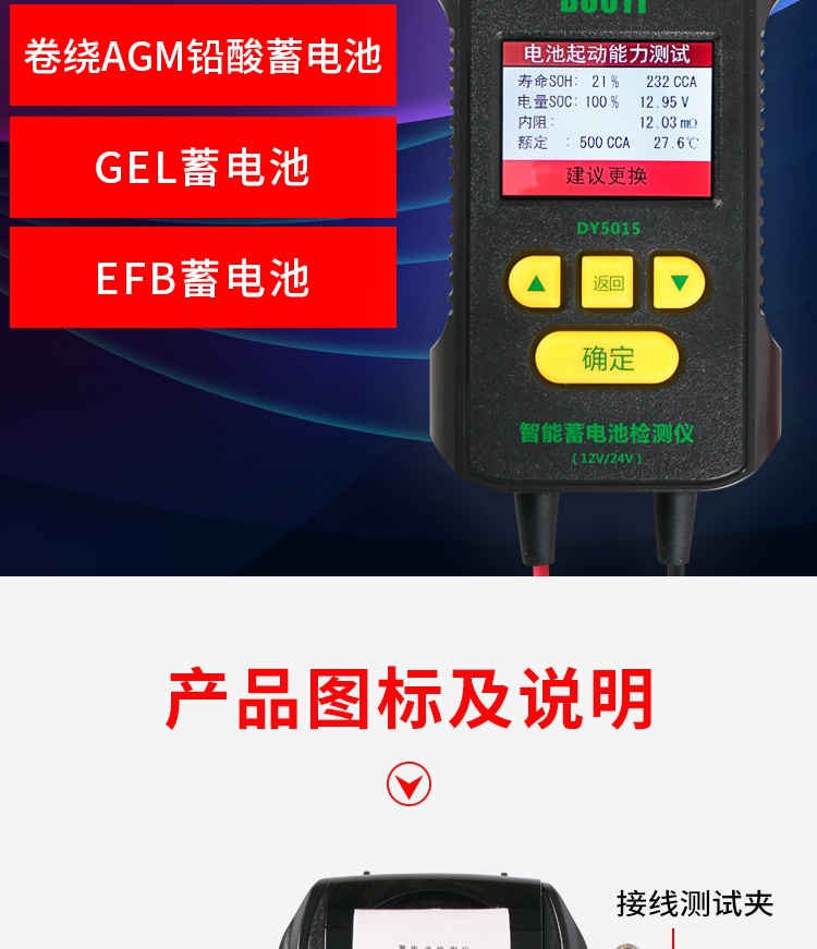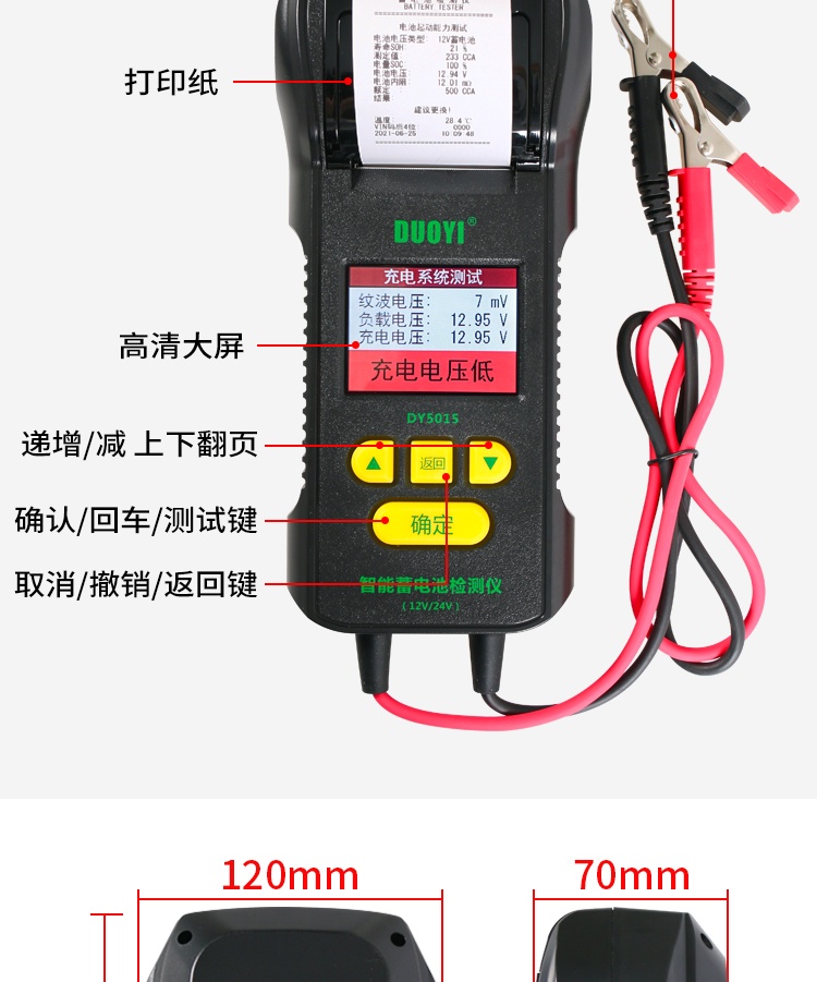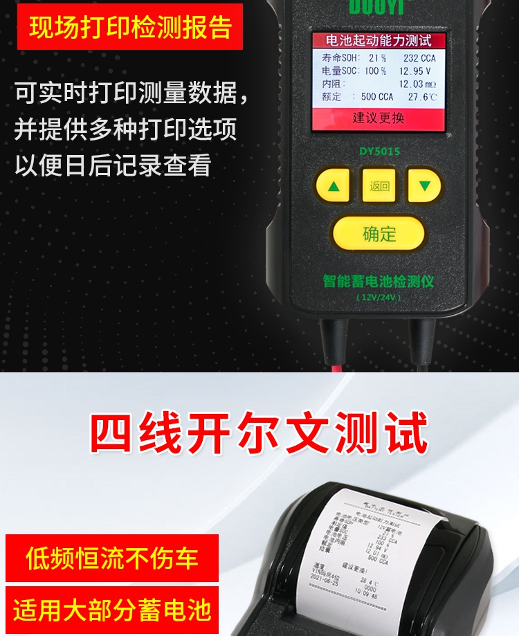 多一DY5015蓄電池檢測(cè)儀帶打印汽車電瓶性能測(cè)試儀壽命容量?jī)?nèi)阻